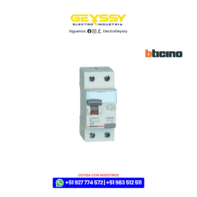 Interruptor Diferencial NEW SALVAVITA 2x25A 30mA 230V 2P Bticino